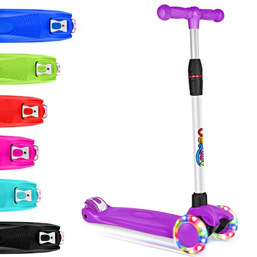 Best Scooter for Kids: Top 15 Picks in 2022 - FUNONWHEEL 1. Micro Kickboard - Maxi Scooter Deluxe Foldable LED - Three-Wheeled. The Micro Kickboard is known for its lean-to-steer design model. It glides smoothly and adds comfort even while riding on rough surfaces. Kids aging 5 up to 12 can use this scooter and ride safely without any issues. Check Price on Amazon.